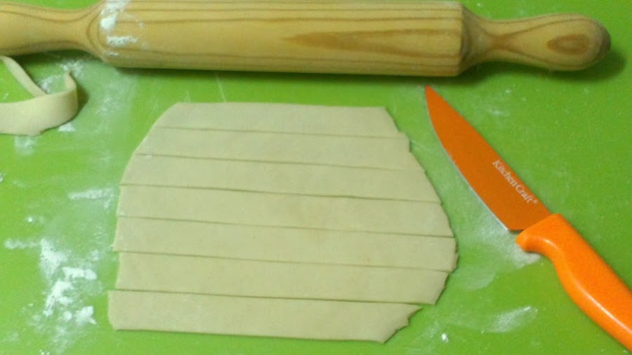 Al colocar la masa sobre el molde, hay que recortar los bordes, y con el poquito de masa que quedaba quise hacer algo. Experimentar.