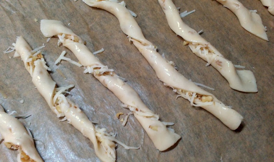 Siguiendo la máxima de mi marido, que cuando pruebo alguna receta nueva o la "invento" me dice: "Tranquila, que con ingredientes ricos sale un plato rico", aposté por lo seguro: Palitos de Queso y Nueces.