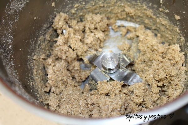 Agregamos la miel y mezclamos 10 segundos a velocidad 4. Nos va a quedar una pasta espesa y algo pegajosa.