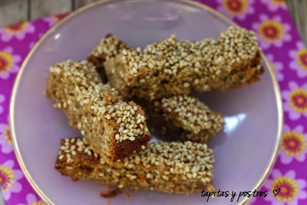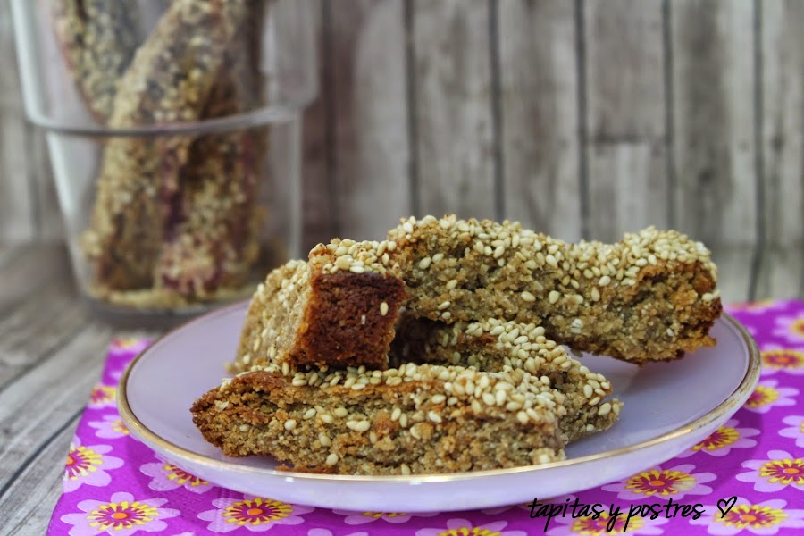Como sabréis, el sésamo, es una semilla muy rica en calcio y en hierro, pero el aporte de algunas semillitas espolvoreadas en una ensalada es pequeño. Estos palitos son puro sésamo, una pasta tierna pero consistente que sirve tanto para picar como para acompañar a un buen desayuno.