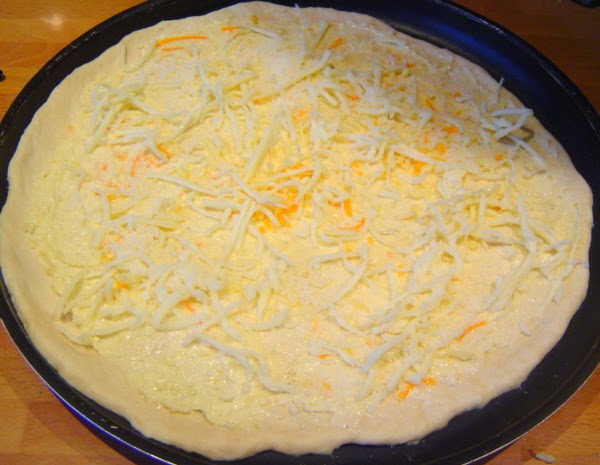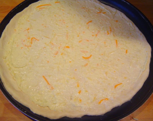 Pasamos esta crema por toda la masa y por arriba echamos todos los quesos.