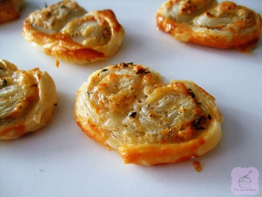 Sin embargo, podéis hacerla con otros quesos. Por mi parte, la hice con un queso de mezcla de leche de vaca, leche de cabra y leche de oveja. Independientemente del o de los quesos que habéis elegido, el sabor será más o menos fuerte. Si vuestro queso es más suave, vuestras palmeras tendrán un sabor a tomillo más pronunciado.