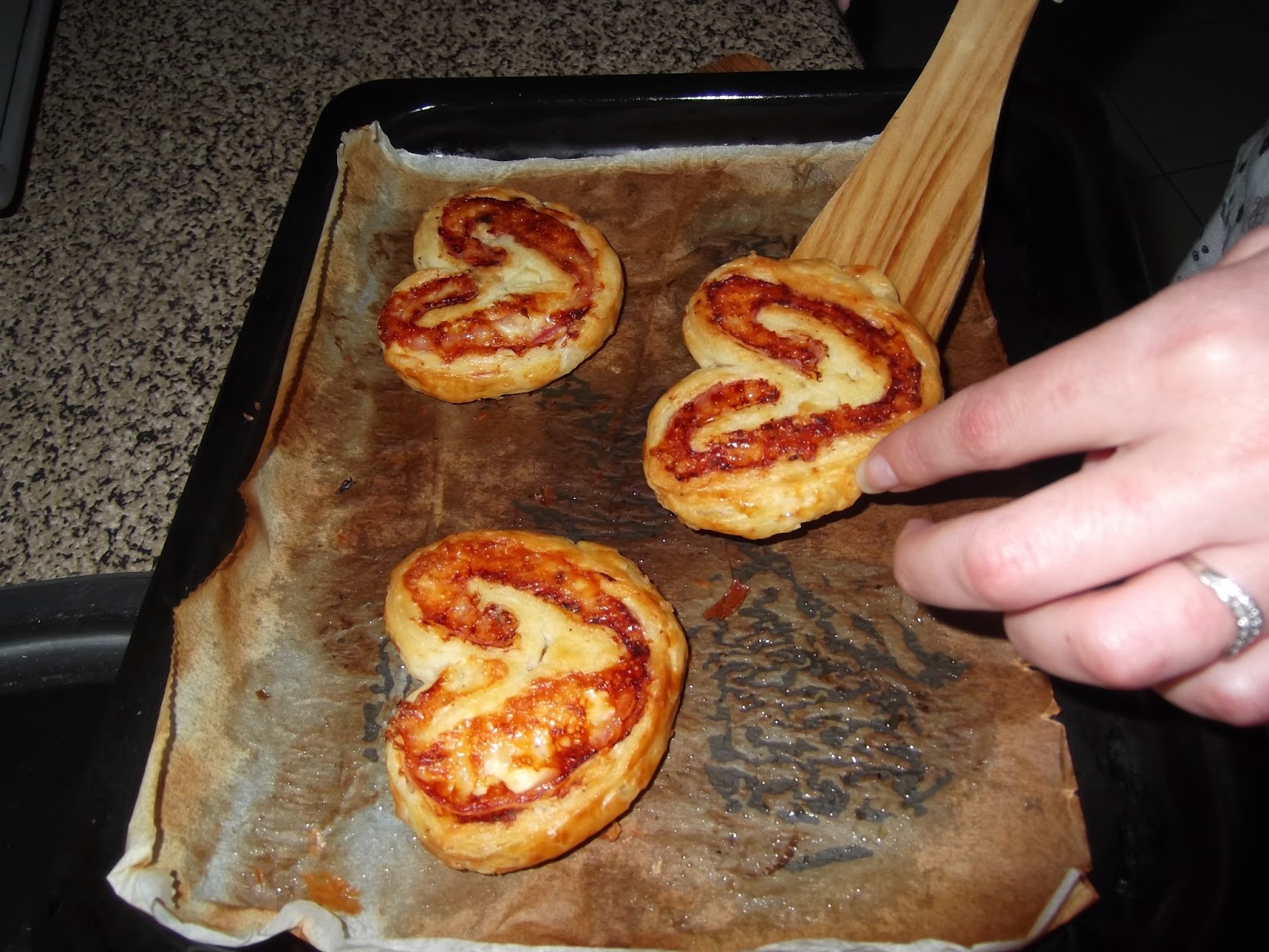 Las metemos al horno y las tenemos durante 15 minutos y cuando veamos que ya están un poco doradas por abajo les damos la vuelta y las tenemos otros cinco minutos. No os preocupéis si al principio veis que se expenden demasiado por la bandeja porque es normal, por eso también os aconsejo que no las pongáis muy pegadas, ya que cuando las metes al horno crecen y si no se os pueden juntar. Por supuesto el relleno lo podéis cambiar a vuestro antojo y utilizar sobrasada, bacon, salchichón, mortadela?.