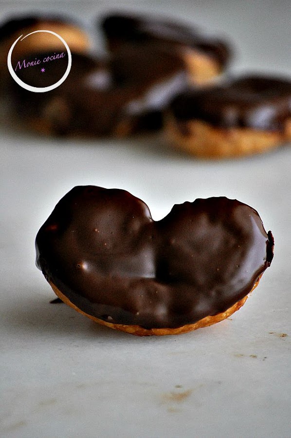 Para bañar las palmeritas las cogemos con los dedos y bañamos en el chocolate, escurrimos un poco y colocamos sobre un papel de horno con bandeja debajo para llevarlas luego a la nevera a enfriar el chocolate. Lo ideal sería dejarlas una hora, es cierto que en menos tiempo empieza a estar duro el chocolate, pero así se asienta más.