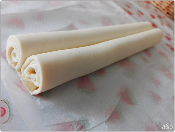 Primero. Extendemos con cuidado y por completo la masa de hojaldre. El kit de la cuestión es enrollar un lado de los extremos hasta la mitad de la masa y luego el otro extremo. Una vez enrollado por completo, partimos en tantos trozos como queramos. A veces, la masa no se enrolla bien, los extremos no se quedan fijados, etc.; en estos casos, podemos incluso aplastar un poco la masa, haciendo la forma de las palmeritas, para que se quede perfecta.