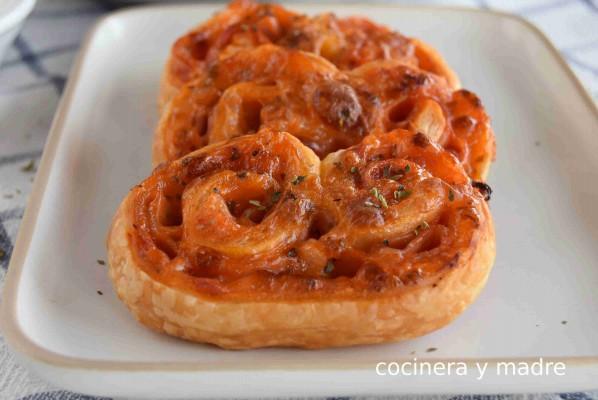 Vídeo receta; palmeritas de hojaldre sabor pizza: