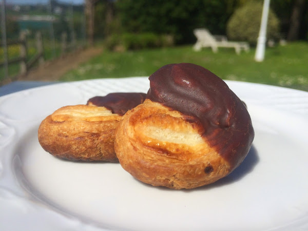 Una visita inesperada y poco tiempo para preparar algo dulce y rico para merendar.Por eso, no se nos ocurre otra cosa mejor que unas palmeritas de hojaldre. Para los adictos al chocolate, las bañaremos (en mi caso, siempre termino haciéndolo).