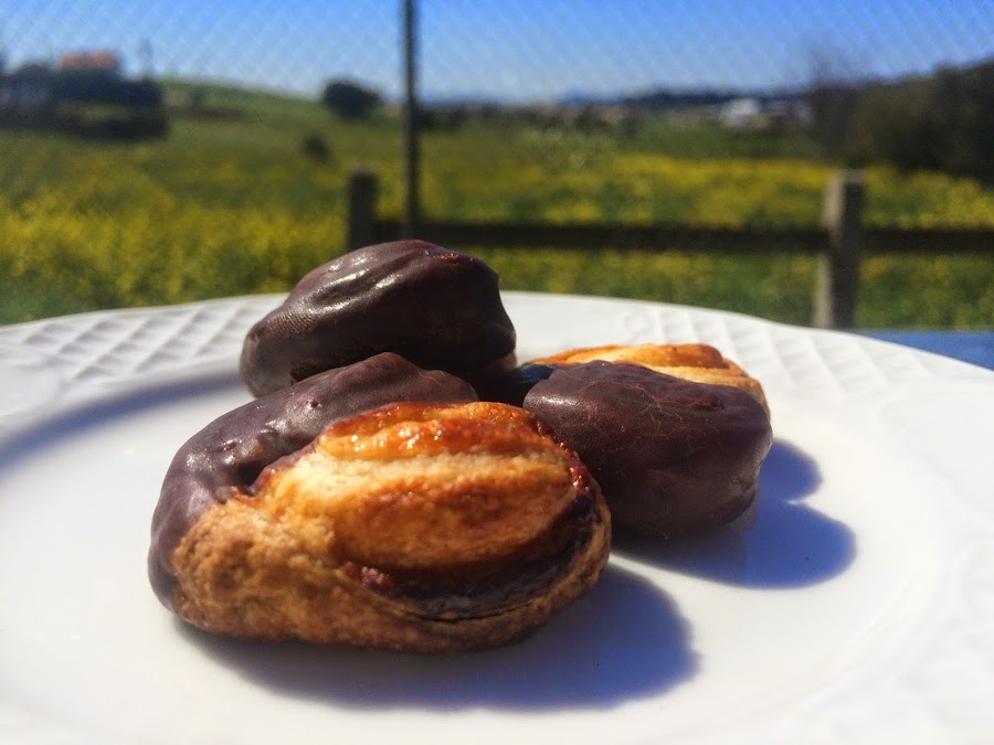 Si las queremos sumergir en chocolate, cocemos el chocolate de repostería con unos 50-100ml de leche. Cuando este todo bien mezclado y espeso, sumergimos las palmeritas y después, las dejamos enfriar el tiempo necesario para no mancharnos al cogerlas.