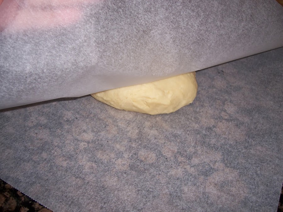 Ponemos la masa entre dos papeles de horno y la extendemos con el rodillo, recortamos los bordes para que esté lo más cuadrada posible.