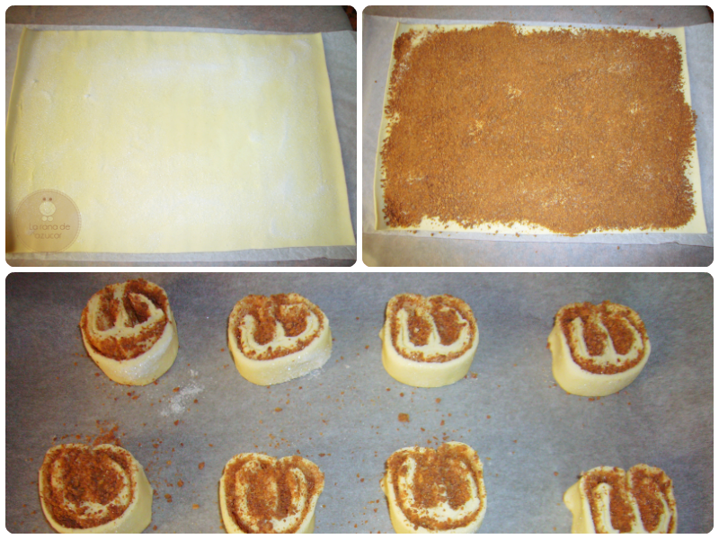 Vamos cortando las palmeritas, el grosor al gusto, no la hagáis muy anchas que luego crecen en el horno.