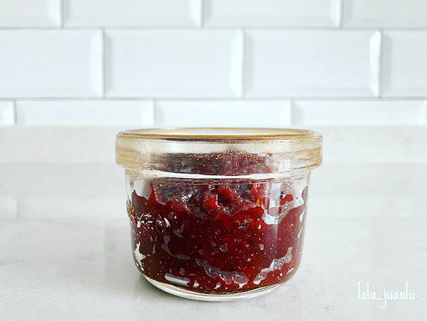 Lo primero que vamos a hacer es la mermelada de pimientos de piquillo, para ello, trituramos los pimientos y los introducimos en un cazo, agregamos el azúcar y el vinagre y ponemos al fuego. Llevamos a ebullición y hervimos durante 10 minutos o hasta que tengamos la consistencia deseada, sin parar de remover. Apartamos del fuego y dejamos enfriar.