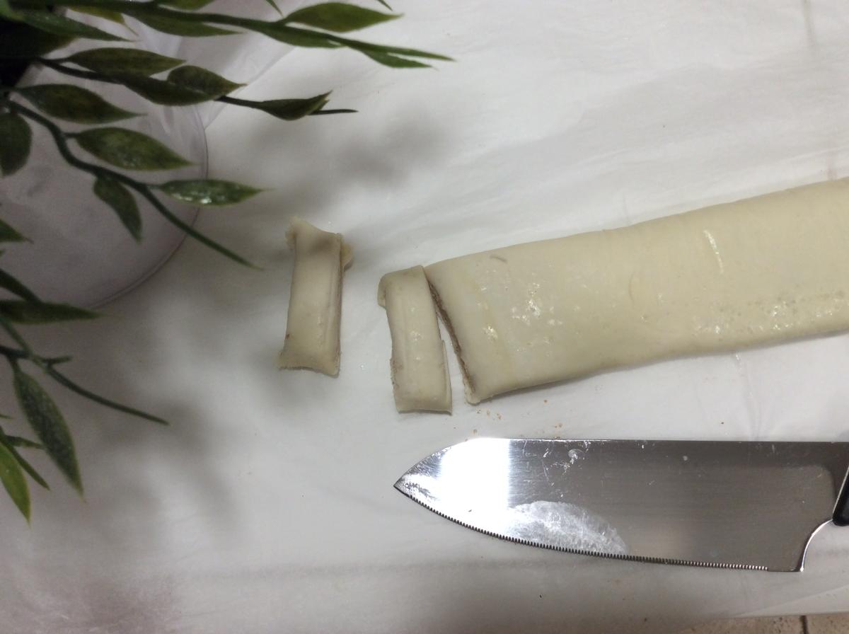 Envolvemos la masa en el papel y lo volvemos a meter en la nevera para que se enfríe un poco la masa y que sea mas sencillo el corte.