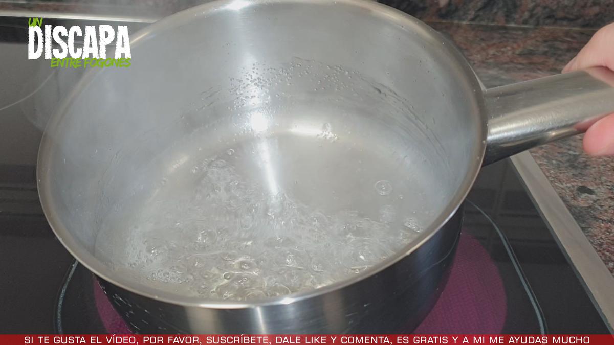 2Después vamos a preparar el almibar, para ello, añadimos 100 gramos de azúcar y 50 milítros de agua y dejaremos que hierva durante un minuto y después apartamos del fuego.