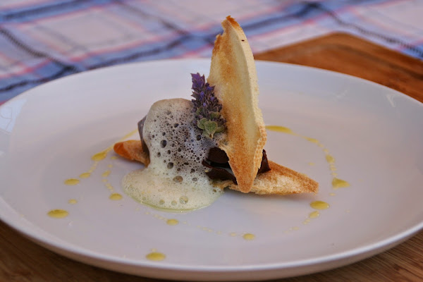 Decorar con una flor de lavanda y un chorro de aceite de oliva por alrededor.