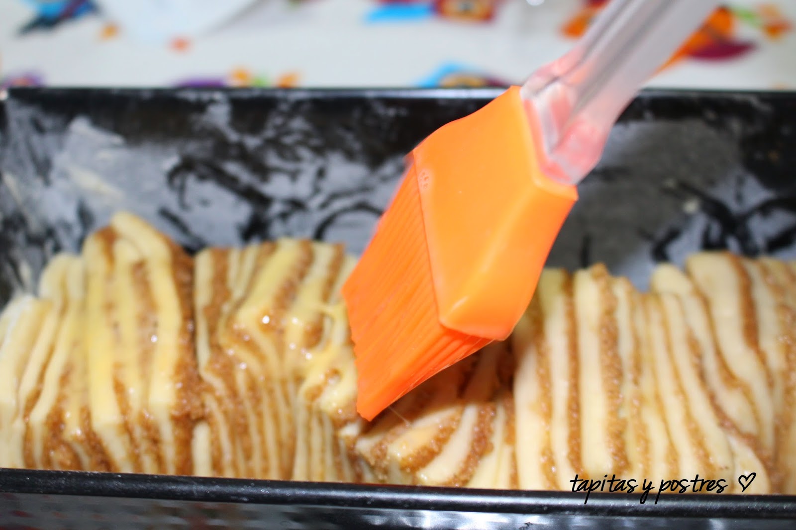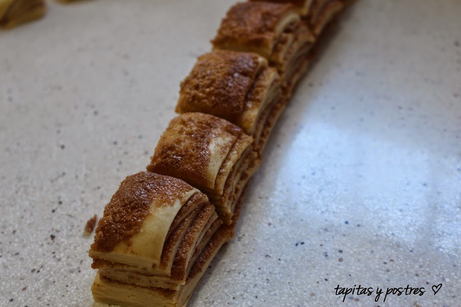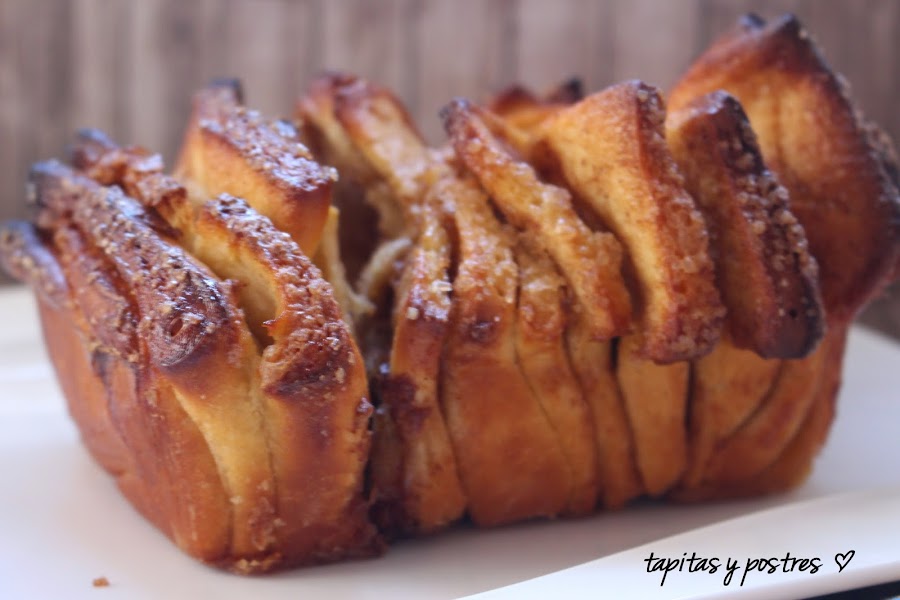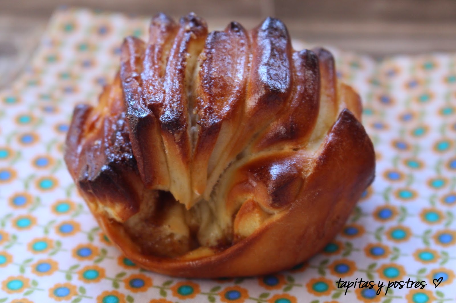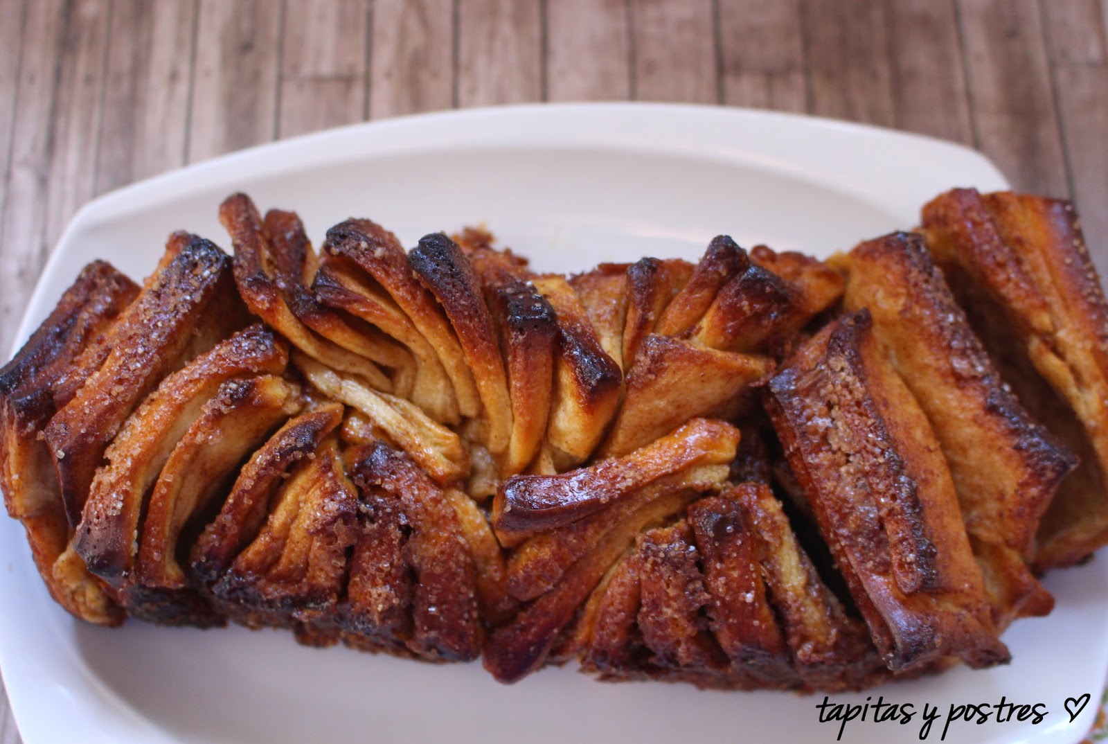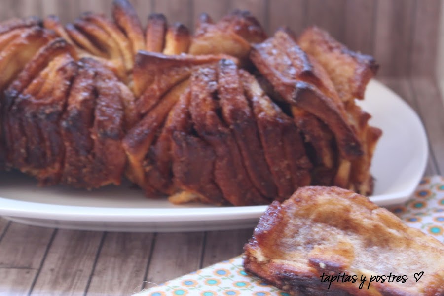 Y aquí está el pan de acordeón. Está realmente delicioso. El azúcar moreno, hace un caramelo por la superficie y el sabor del relleno de canela le da un toque maravilloso.