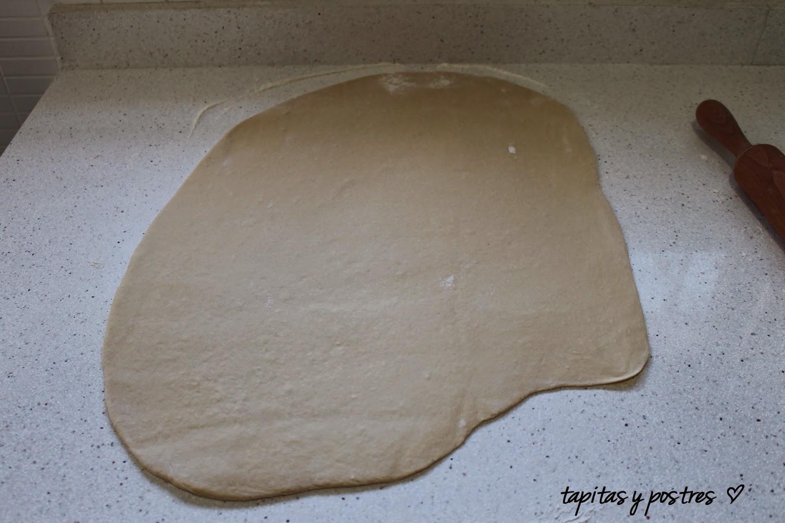 Ahora estiramos bien la masa sobre la encimera enharinada. Es una masa fácil de trabajar,no se pega nada.