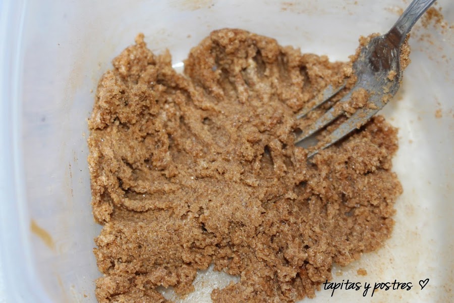 Vamos a dejar el relleno hecho: mantequilla, canela y las dos clases de azúcar. Bien mezclado hasta que quede como una crema.