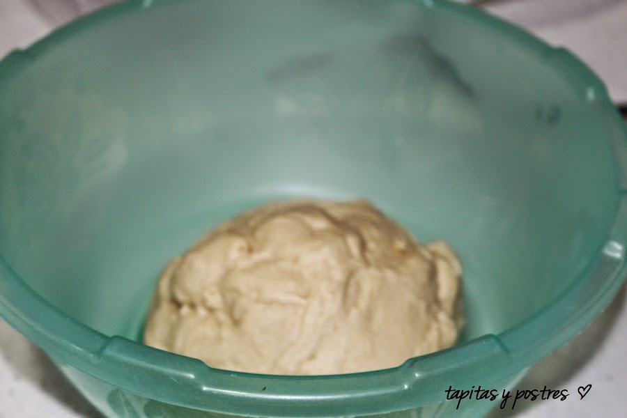 Sacamos la masa, le damos forma de bola y la dejamos en un bol, tapado hasta que crezca.