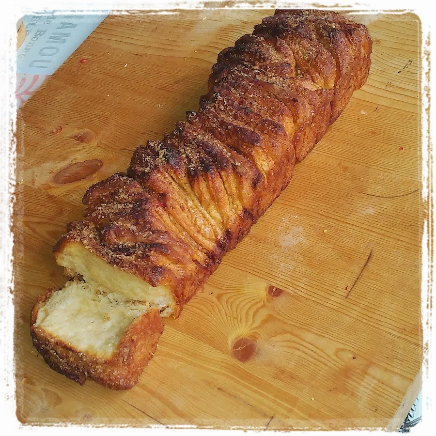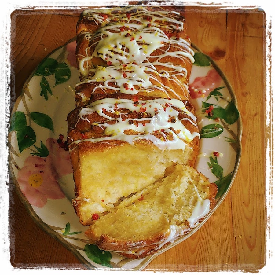En esta ocasión hice un par de panes acordeón, uno de limón, chocolate blanco y pimienta rosa y otro de canela.