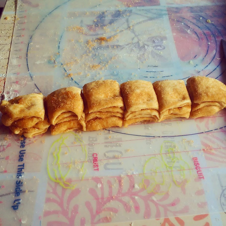 Pintamos con la mantequilla y espolvoreamos con la ralladura de limón o la canela ( dependiendo de qué pan hayamos elegido hacer primero ).