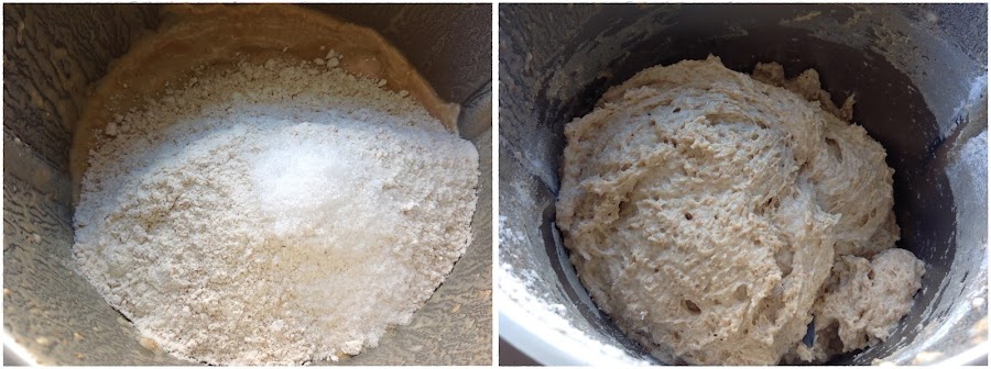 Incorpora el resto de harina y la sal. MEZCLA / 8 / SEG. VEL. 6.