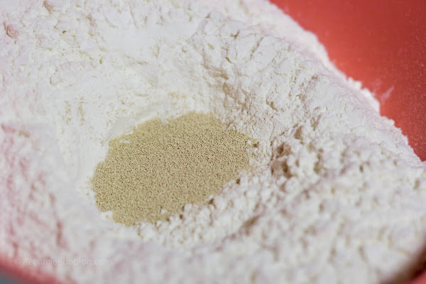 En un bowl, añadir la harina y hacer un hueco en el medio, para agregar la levadura y el agua y la leche. Por los costados, agregar el aceite y la sal. Luego, integrar los ingredientes con cuidado y hacer un bollo.