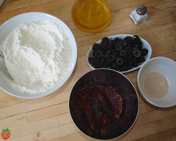 Antes de empezar con la receta del pan bagnat, preparamos los ingredientes y utensilios necesarios. Y ahora, ¡a amasar!