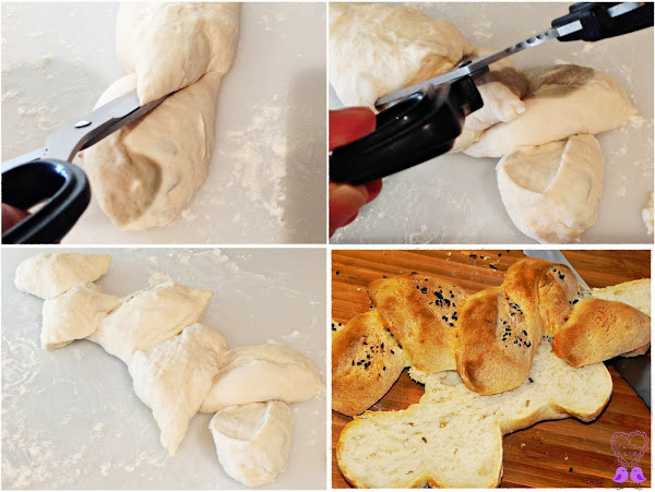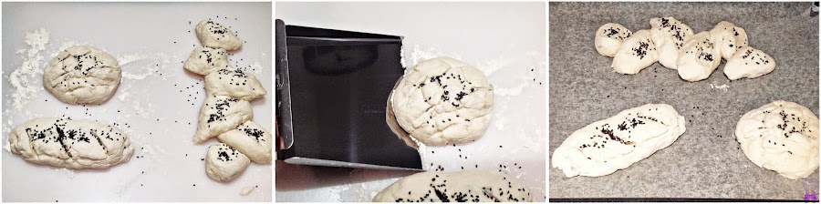 Enharina (poca cantidad) la superficie de trabajo y da forma al pan (como más te guste).