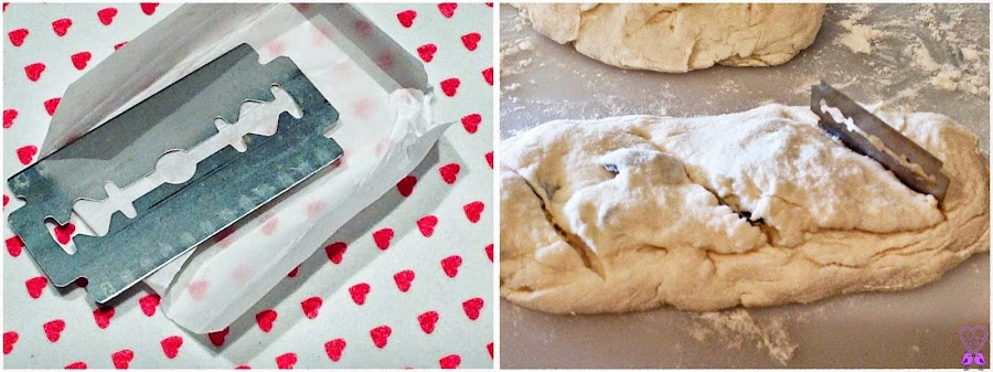 Con ayuda de una cuchilla nueva, haz incisiones en la superficie del pan amasado. ¡Cuidado no te cortes!