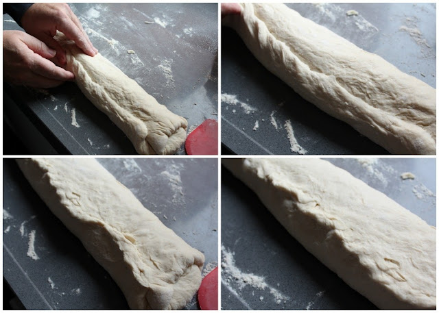 Sobre un paño espolvoreado abundantemente de harina, colocamos la masa con la junta hacia abajo. Enharinamos la superficie expuesta y dejamos levar, durante 30 minutos, o hasta que haya doblado su volumen.
