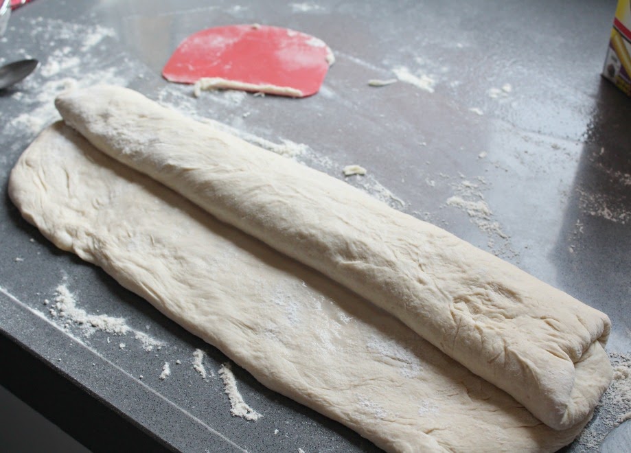 Doblamos la masa, a lo largo y dejamos unos 3 cm., antes de alcanzar el extremo.