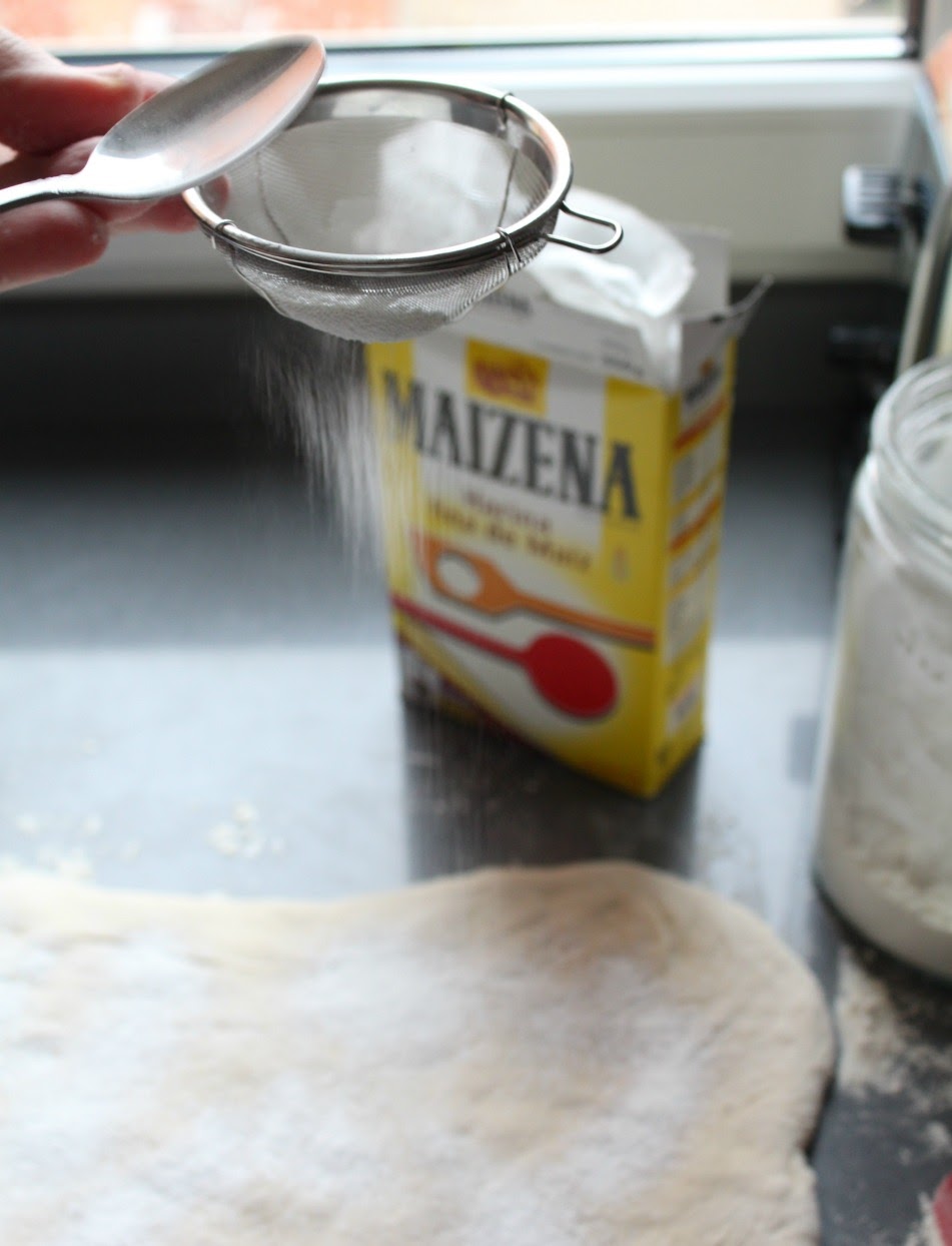 Pintamos o pulverizamos con agua la superficie y espolvoreamos harina de maíz.