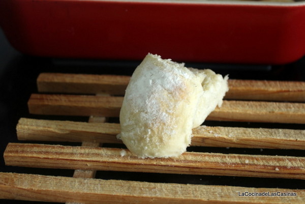 Aplastas suavemente cada una de las bolas con la palma de la mano y espolvoreas con harina. Introduces en horno precalentado a 180º durante 15-20 minutos.