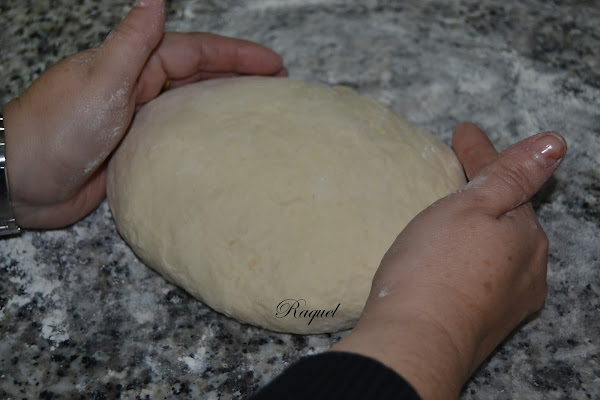 Retirar la masa del vaso sobre el mármol espolvoreado de harina, formar una bola aquí le añadí un poco de harina que le faltaba, porque la note que se enganchaba un poco la masa.