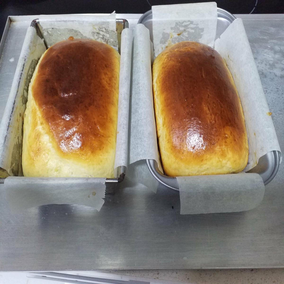 Pasado este tiempo, desgasifica la masa y ponlo en un molde de cake grande dando forma. Yo he dividido la masa en dos y la he puesto en dos moldes más pequeños, así me queda uno para las torrijas y otro para tostadas.