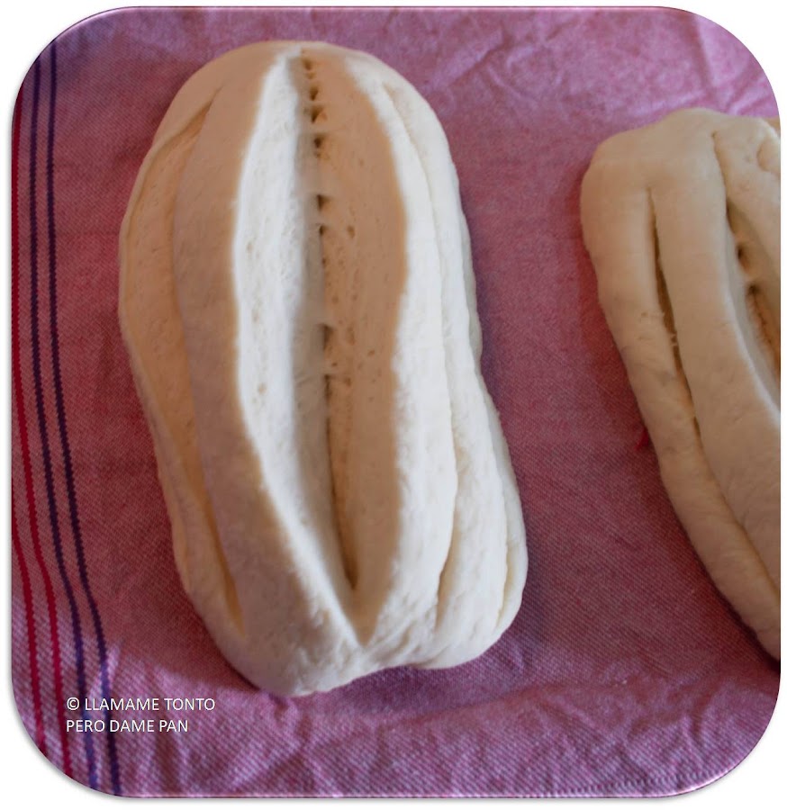 Dividimos nuestra masa en tres porciones y damos forma. También realizaremos el greñado, que en este caso es un corte central, dos paralelos más cortos y otros dos más.