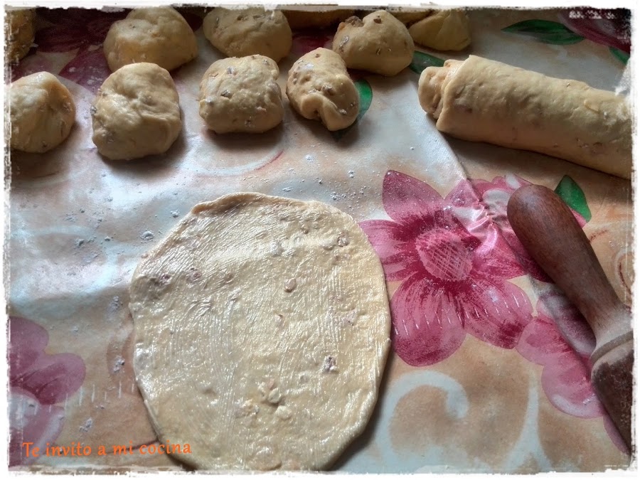 Pasado ese tiempo, volvemos a amasar para sacarle el aire y la dividimos en 16 porciones. aquí es donde yo le agregue la avena.