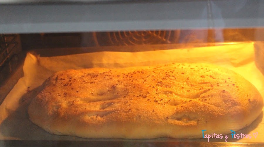 Echamos el aceite por encima, espolvoreamos con el azúcar y la matalauva y horneamos unos 20 minutos. Notareis que está hecho porque ha crecido y está dorado.