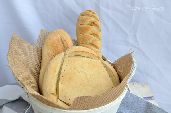 Haremos una bola y aplastaremos para formar el pan redondo y haremos también una barra alargada, el llamado "pan de icos" y "pan picado". Haremos los cortes inmediatamente y dejaremos levar hasta que doble volumen. Después del levado se hacen los agujeros para que el pan respire durante el horneado.