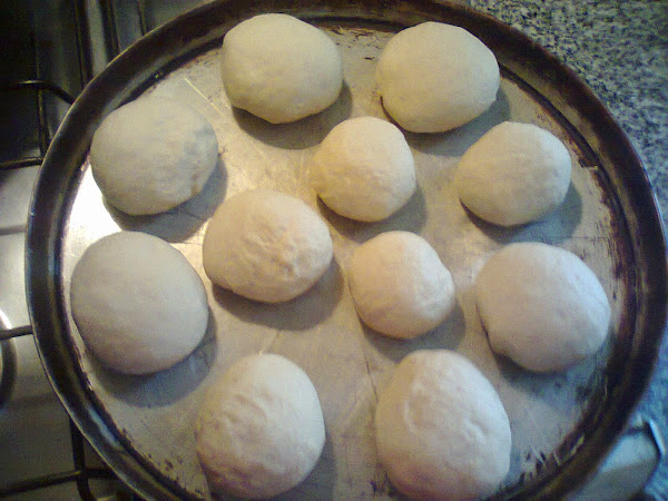 una vez leudado, amasamos un poco y formamos pequeños bollos que acomodamos en una fuente de horno previamente engrasada