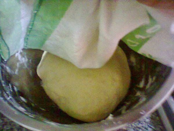 formamos un bollo y lo ponemos a leudar tapado y en un lugar cálido.