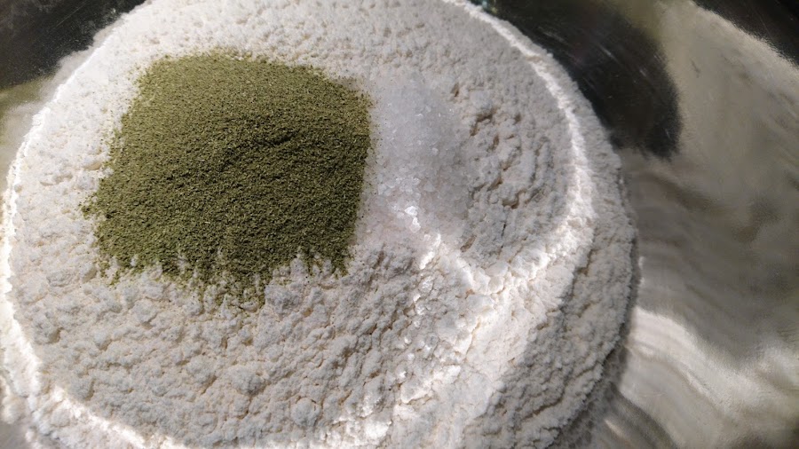 En un bol grande mezclamos la harina con el azúcar y el orégano. A mano, sentid la mezcla, que de eso va esto, de experimentar sensaciones.