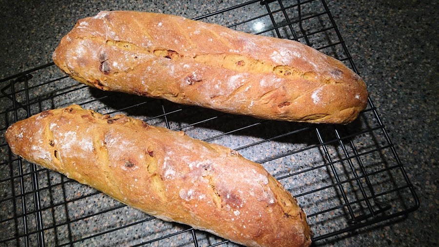 Sacamos el pan y lo dejamos enfriar en una rejilla. Y listo, ya tenéis a mano un espectacular pan casero de tomates secos y orégano para combinar todo tipo de platos, tostas o desayunos.