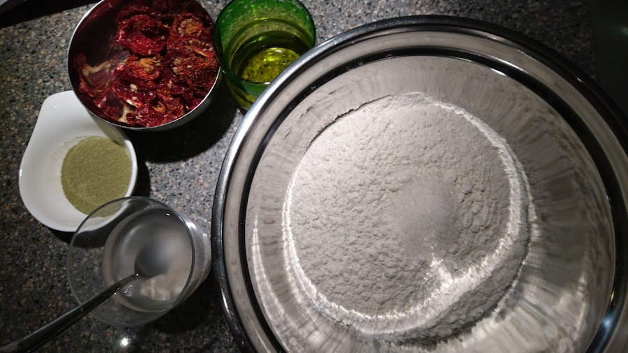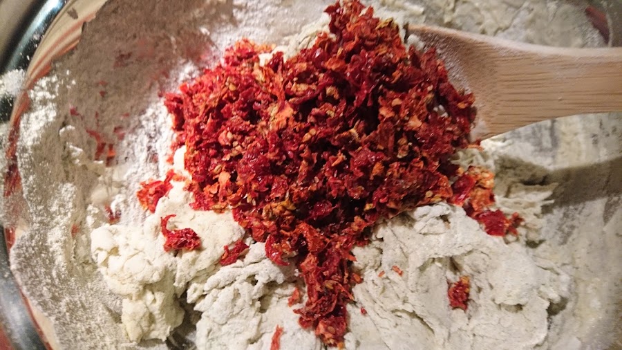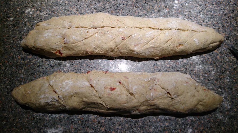 En esta ocasión he realizado un pan aromatizado con orégano y con unos tomates secos. Un bocado ideal para acompañar ensaladas frescas, o una tabla de quesos o para dar vida a un desayuno. Imaginaos un chorrito de aceite de oliva Virgen Extra por encima y un ajito frotado...