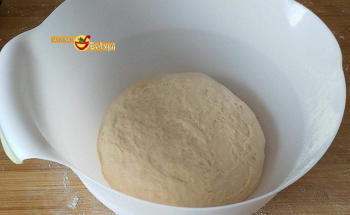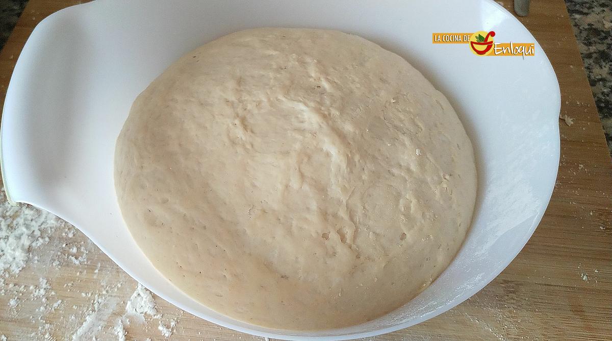 Engrasa el bol con un poco de aceite, forma una bola con la masa y ponla en él. Tapa con un paño y deja reposar hasta que doble su volumen. Esto puede tardar una hora aproximadamente con una temperatura ambiente de 20 ºC. Ya sabes que si hace más frío, necesitará más tiempo de levado.dando forma