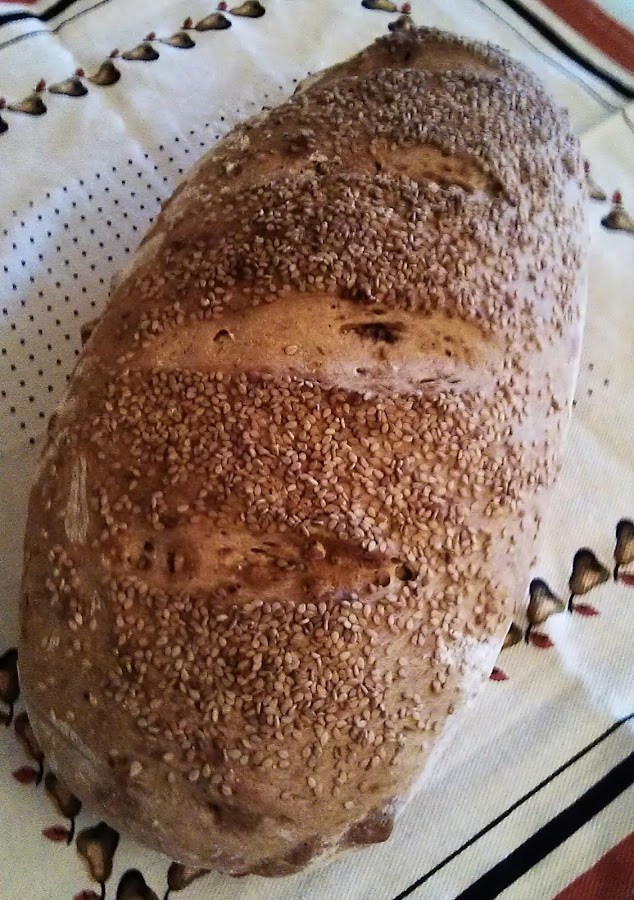 Hemos hecho pan normal, integral, con nueces (el de la foto lo es), con queso y orégano, etc.