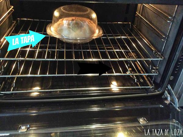 Muchos de nosotros tenemos esos recipientes de cristal con tapa también de cristal, tipo Pyrex pues bien, ahí se hace, la tapa sirve de soporte y el recipiente sirve de tapa. Aunque parezca raro, este recipiente nos sirve de horno dentro del horno...jajaja sé que no suena muy "cuerda" la cosa, pero en cuanto lo preparéis os quedaréis asombrados de la pinta que tiene este invento ya que mantiene además el grado de humedad necesaria para una buena cocción.