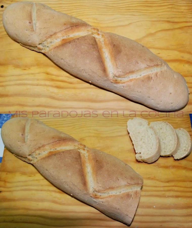 Notas: Este pan solo tiene una fermentación y, la verdad, es que en esta zona está haciendo una buena temperatura (unos 20º) ambiental y eso ayuda bastante. Mientras fermenta el pan se pueden hacer otras cosas. Si tenéis más tiempo, dejadlo fermentar hasta que sea desarrollado.