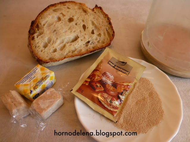 Si quieres saber como se hace, puedes ver cómo la hice Aquí y el único inconveniente que tiene es que tiene que estar lista para el uso a la hora de hacer pan. Tendremos que alimentarla y darle unos cuantos "refrescos" para que esté lista. Parece complicado pero no lo es, puedes ver como alimento la Masa madre en este Vídeo .