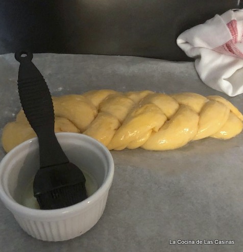 Pincela con la mezcla de clara y agua que tenías reservado.